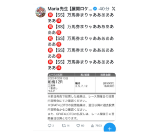Mariaです😊競馬の予想には絶対的自信がある。毎日競馬について勉強しています。予想方法は完全展開予想‼️馬柱から見えない展開不利を受け大敗した馬や展開に恵まれ実力以上に力を発揮できる馬を探すのが得意🐴