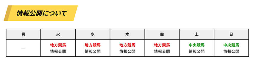 毎週、火・水・木・金曜日には地方競馬の情報を公開。