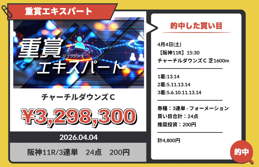 | 馬券代 | 推奨金額の提示なし (上限1点3000円) |