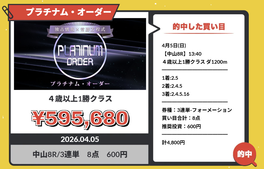 - 無料情報“ 19週連続的中 ”記録を樹立!