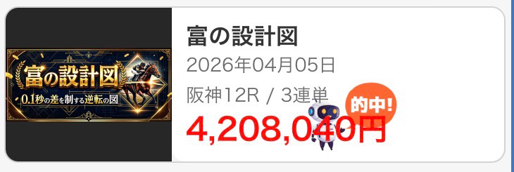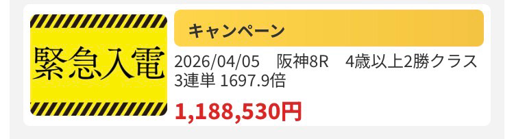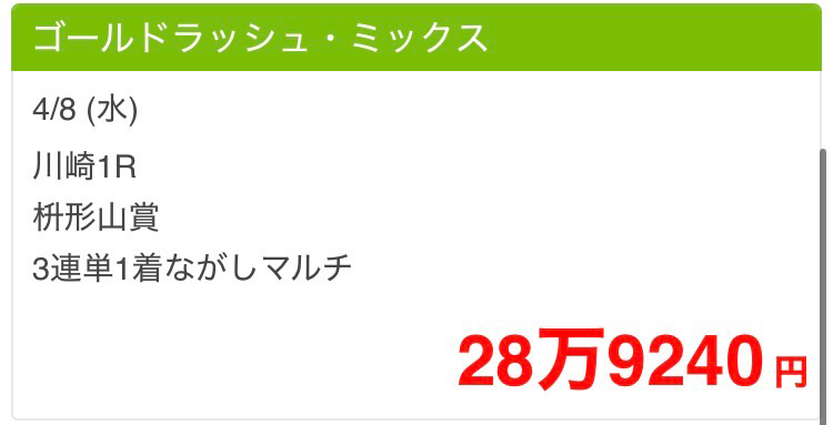 パックの他レースからそれを補って余りある1500倍をこえる的中。