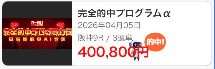 旧サービスから大幅リニューアルを遂げた優良競馬予想サイト!完全オリジナルの独占AI競馬ツールが人間では追いつけない領域まで進化!オリジナルコンテンツも超絶パワーアップ!管理人の無料情報検証では参加回数3回で151,400円の払戻金を獲得。パワーアップしたえーあいNEO(ネオ)だから実現できる最適化された環境で稼ぎまくりましょう!