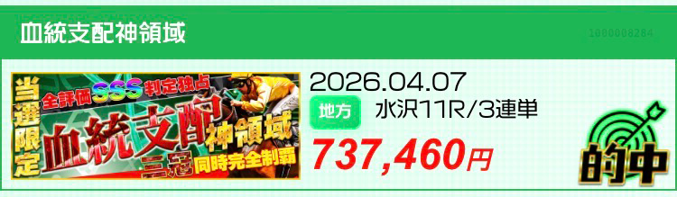 「完全無料」で試せる優良競馬予想サイト!勝ち続けることにこだわるからこそ根拠に基づいた的確な予想を提供!「買い目」や「指数」「データ予想」「有力馬情報」「重賞予想」などが完全無料で試せる!管理人の無料情報検証では推定的中額以上の利益を獲得!本気で「勝ちたい」と思っているなら超低リスクでステップアップできる的中サークルがおすすめ!