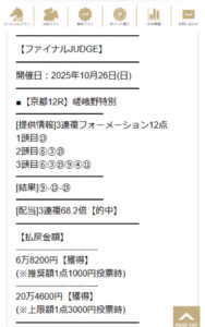 今回の情報の特筆すべき点は、何よりも低予算、馬券代1万円から50万円クラスの配当獲得が現実的に目指せる、その“ 圧倒的なポテンシャルの高さ ”と言えるでしょう。