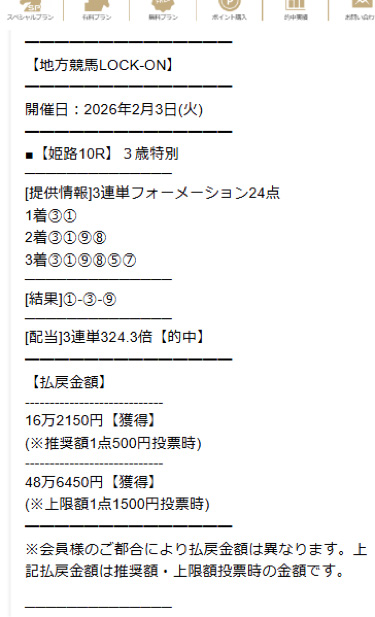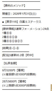 新聞・雑誌・インターネット等の一般ツールで誰でも分かるような人気サイドばかりで構成された買い目であれば、わざわざお金を払って情報を買う必要は一切ないと言えるとでしょう。