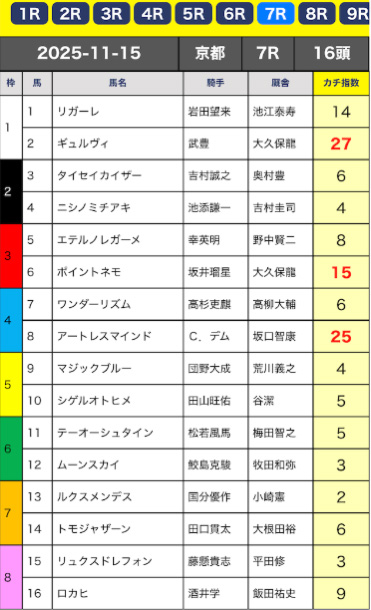 買い目が提供される訳ではなく「カチ指数」という独自の指数を軸に点数を各馬につける方式です。