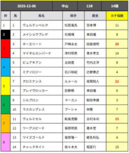 管理人は、この指数が高い上位5頭の3連複BOXで勝負してみました。