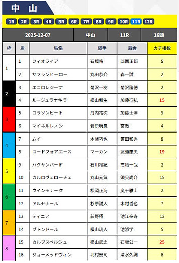 買い目が提供される訳ではなく「カチ指数」という独自の指数を軸に点数を各馬につける方式です。