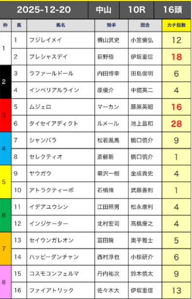 管理人は、この指数が高い上位5頭の3連複BOXで勝負してみました。