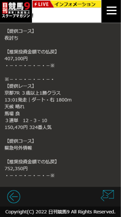 日刊競馬9( ナイン )では、有料情報の提供を行っています。